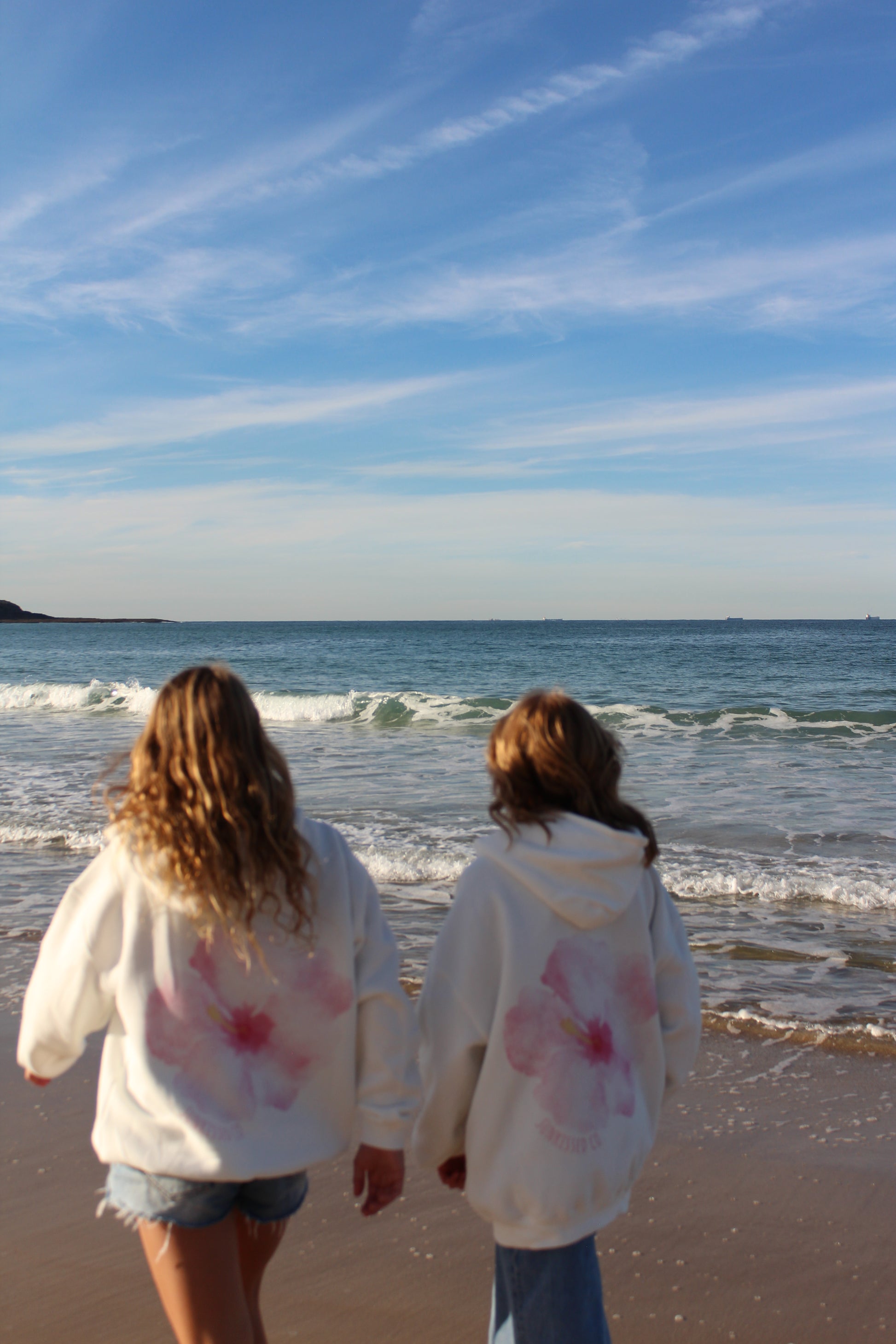Introducing our Sun Kissed Co. White Hoodie – a perfect blend of style and cozy comfort! This 300 GSM hoodie, crafted from a soft 20% polyester and 80% cotton blend, offers exceptional warmth, ideal for chilly days or beach evenings. Featuring a stunning pink hibiscus flower design on the back, it adds a tropical touch to your wardrobe. With a relaxed, unisex fit, it pairs effortlessly with shorts or jeans. Grab yours now and embrace the sun-kissed lifestyle!